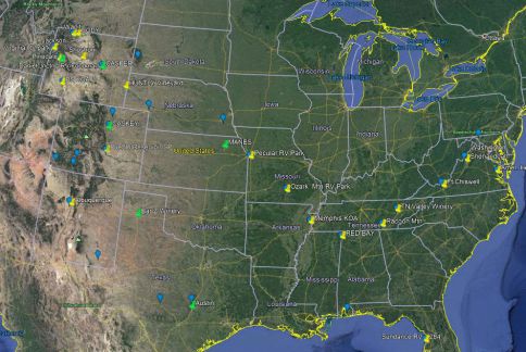 So where did we go? In brief, we traveled from Maryland to Florida by way of Virginia, Tennessee, Alabama, Missouri, Nebraska, Wyoming, South Dakota, Colorado, New Mexico, Texas, Louisiana, Alabama (again), Georgia and finally Florida (each pin represents a stop of a few days to a few weeks). We covered about 8,000mi averaging about 37 miles per day. Of course, that doesn’t begin to describe the journey with all the stops along the way visiting good friends, making new friends and seeing some of the most
